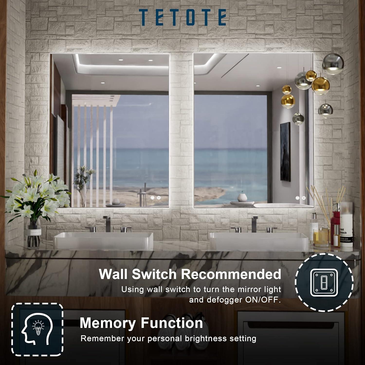 TETOTE 24 x 32 Inch LED Backlit Bathroom Vanity Mirror,Anti-Fog,Dimmable,CRI90+,Touch Button,Water Proof,Horizontal/Vertical Wall Mounted with Light